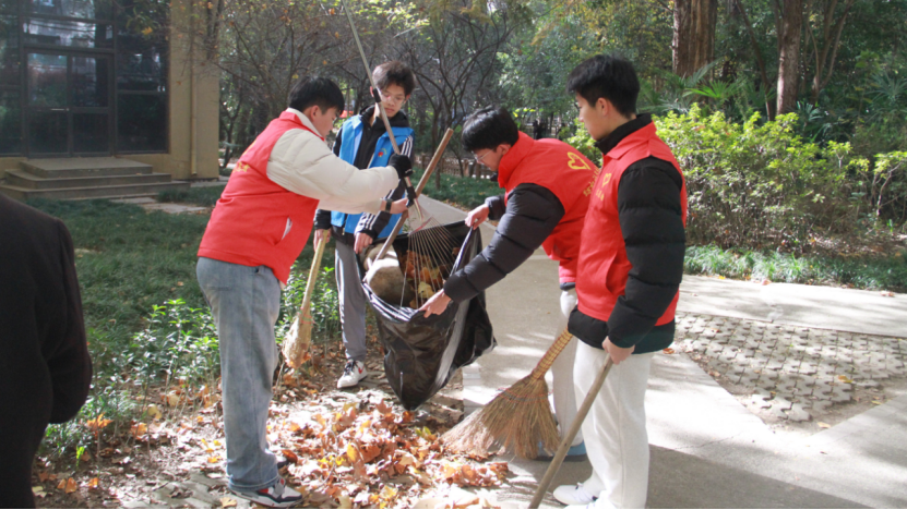 活动当天,同学们集合后前往美林青城38栋纺机社区在与社区完成对接后,迅速投入环境卫生清扫工作。深秋时节,落叶纷飞,堆积的落叶不仅影响环境整洁,遇雨易滑也存在安全隐患。在社区志愿者的协助下,同学们分工协作,有序开展落叶的清扫、收集与清运。