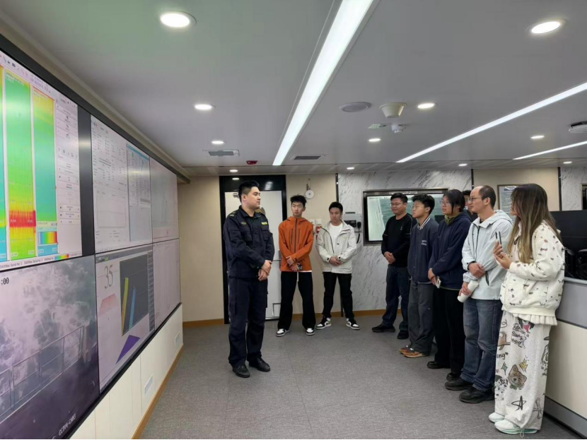 “海巡08号”是我国首艘深远海大型专业海道测量船,由交通运输部东海航海保障中心运营管理,在此次活动中为师生进行多专业实习提供了“移动实践平台”。在船上工作人员的带领下,师生们系统参观驾驶台、机舱、Gondola声学设备区等关键区域,共同观摩浅底层剖面仪探测等航海测量与海事作业的协同场景。在实习活动中,航海技术专业学生聚焦驾驶台核心操作,重点钻研AIS自动识别系统应用;导航工程专业学生结合机舱内保障精密仪器运行的清洁电源系统,体悟定位技术在船舶导航中的关键作用;海事管理专业学生侧重船舶安全监督与应急处置,通过参与演习熟悉海事应急规范等管理要点。
