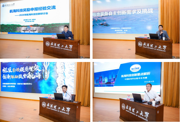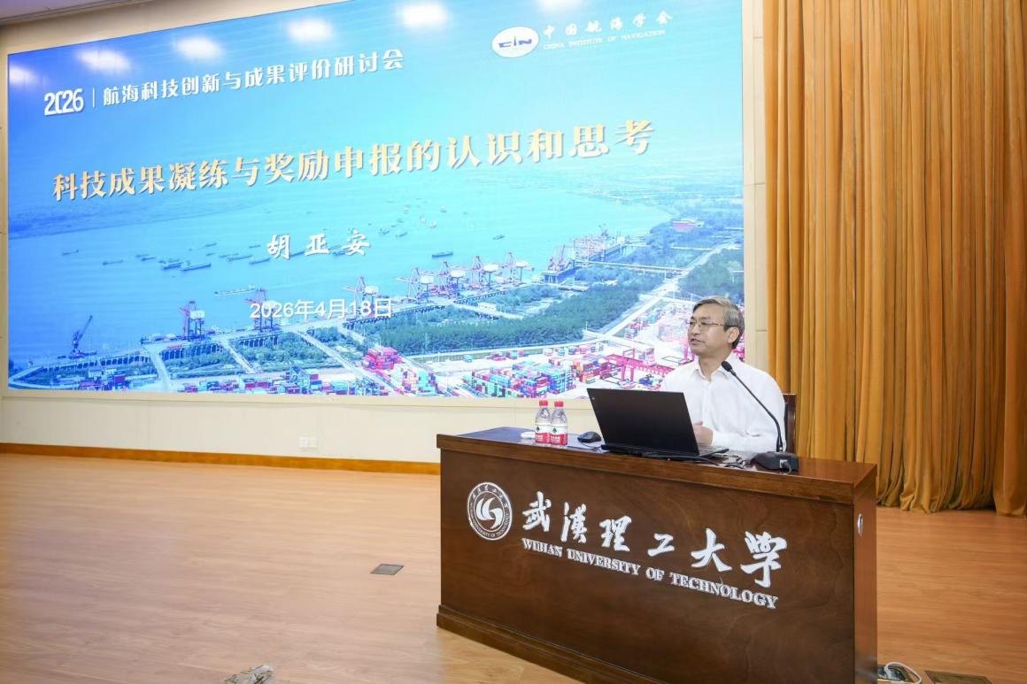 4月18日,由中国航海学会主办、武汉理工大学航运学院承办的2026年航海科技创新研讨会在我校会议中心301召开。中国航海学会理事长、中国工程院院士严新平,南京水利科学研究院原总工、中国工程院院士胡亚安,中国航海学会常务副理事长李世新,我校党委副书记刘春江等出席会议。来自交通运输领域企事业单位和科研院校的100多家单位、超过200名代表参加大会。会议由中国航海学会秘书长刘顺主持。