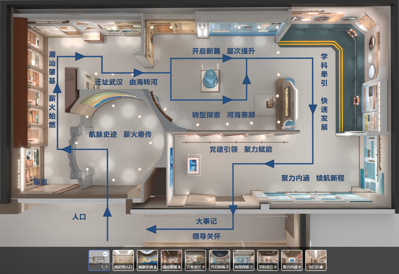 据了解,“云上”院史馆采用3D建模、VR全景、实景图片、视频展播、语音讲解等多元数字化手段,精准复刻了实体院史馆“航脉史迹ﻪ薪火赓传”“潮汕肇基 薪火始燃”“迁址武汉ﻪ由海转河”“转型探索 河海兼顾”“开启新篇ﻪ层次提升”“学科牵引 快速发展”“聚力内涵ﻪ续航新程”等全部展区。观众无需抵达现场,只需滑动屏幕,便可身临其境般在馆内自由“漫步”,借助放大细览、语音导览、视频点播等便捷功能,零距离、全方位了解学院八十年的办学历程、精神内涵与未来发展愿景。